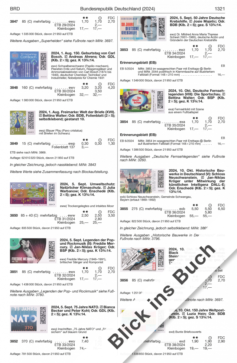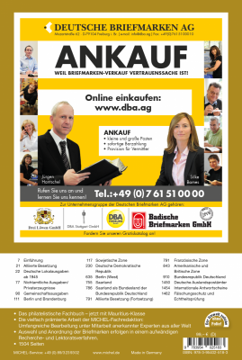 Außerdem neu im Spezial 2025 sind Papier-, Farben- und Typendifferenzierungen sowie Plattenfehler- und Abarten-Ergänzungen für SBZ und DDR, ergänzende Infos zu Stechern und Entwerfern, Zähnungs- und Rastertypen, Abarten und Plattenfehlern sowie alle Markenneuausgaben bis März 2025 inklusive einer Liste der neugestarteten Eigenausgaben der Post für das Sammelgebiet BRD und schließlich eine detaillierte Überarbeitung der Sammelgebiete Jungholz und Kleinwalsertal mit überarbeiteten Texten, Bildern und Preisen.