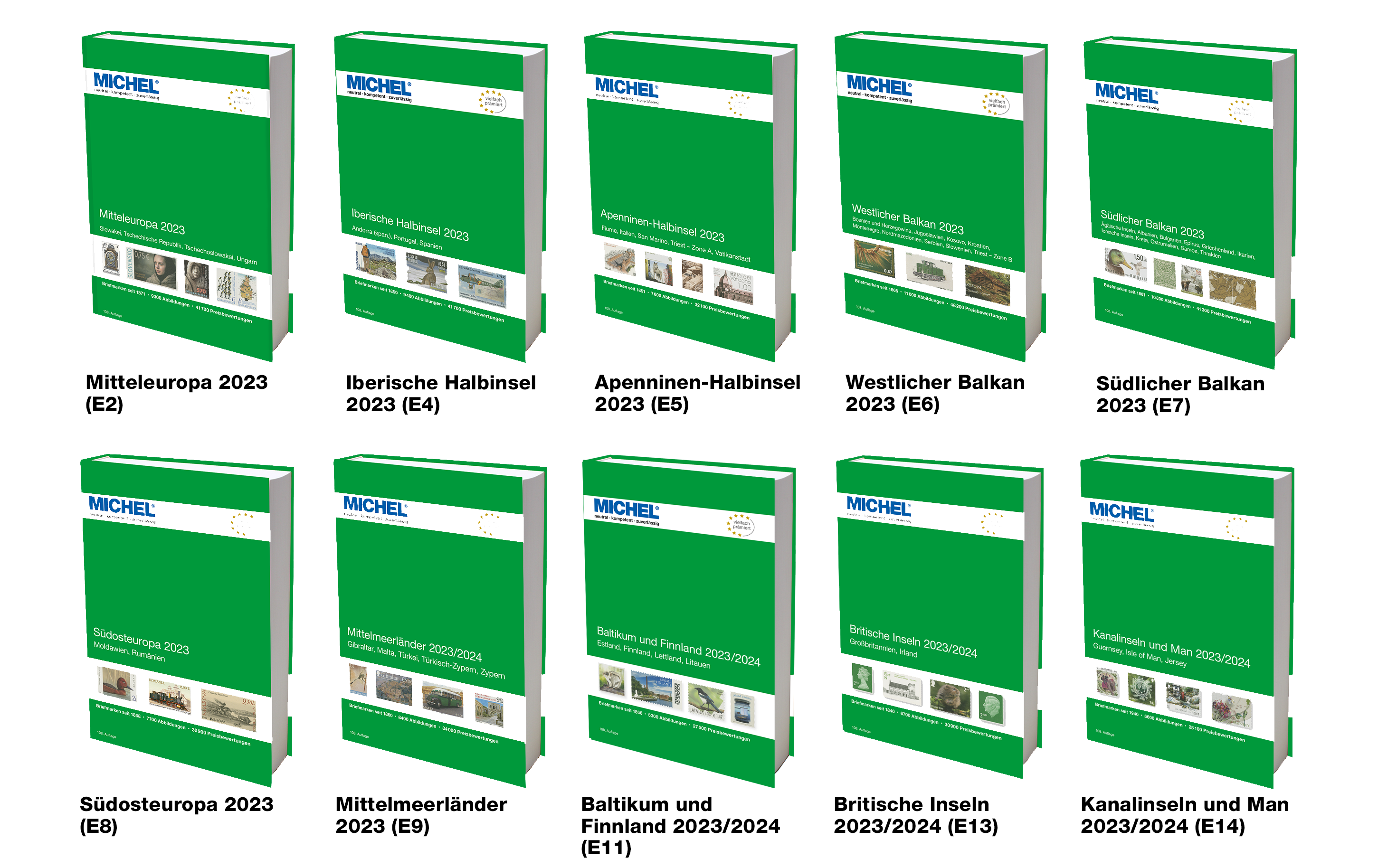 Inhalt: Die Europa-Bände 2, 4-9 und 11, 13, 14 der MICHEL Reihe 2023/2024 im Set zum Sonderpreis.