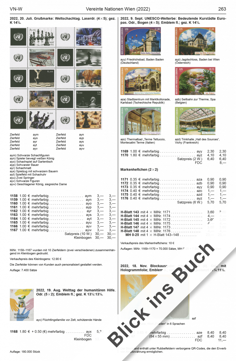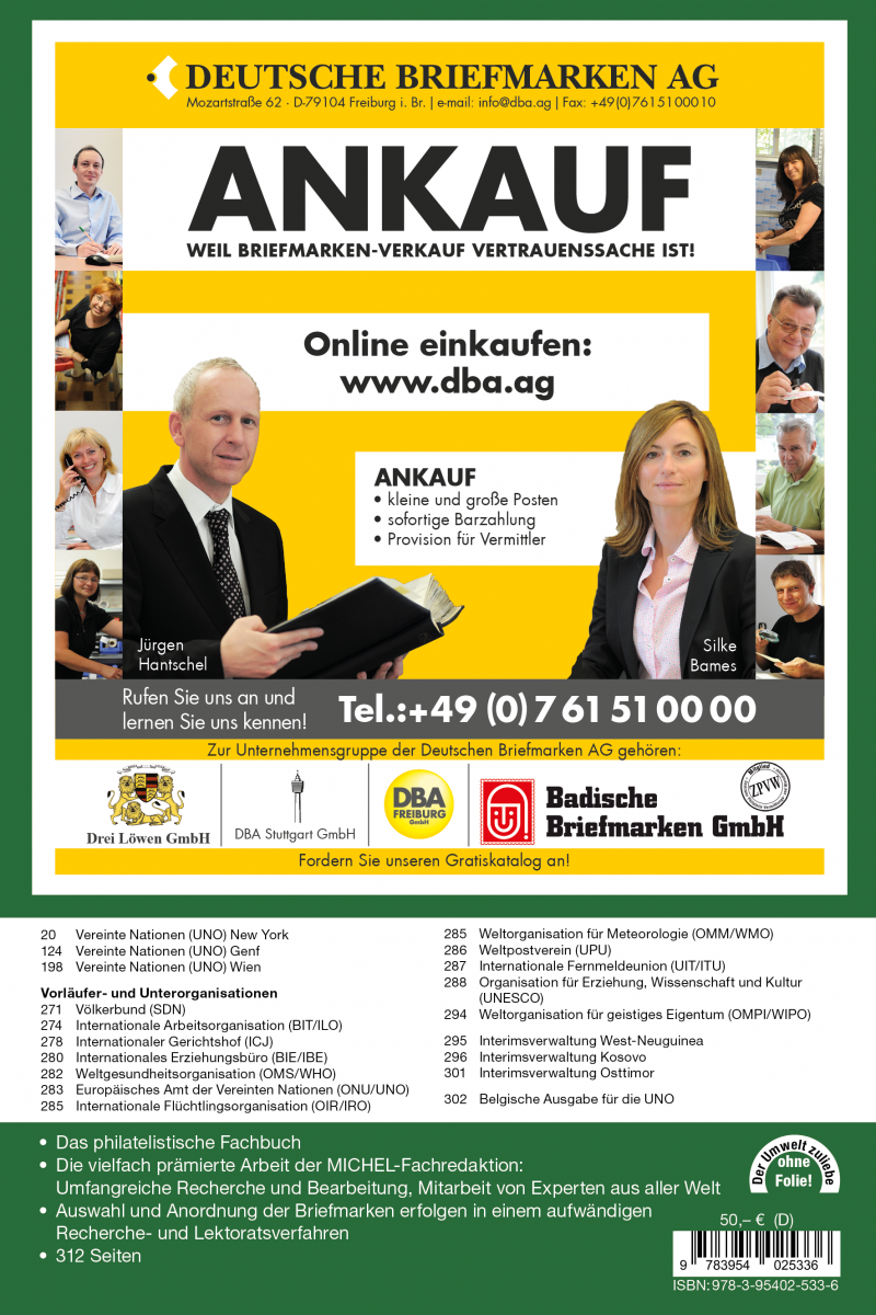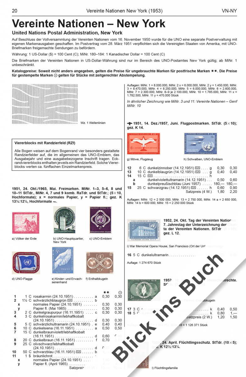 Sammler der Vereinten Nationen finden in diesem Band alle Ausgaben, die sie für ihre Sammlung benötigen. Dazu gehören nicht nur der UNO-Hauptsitz in New York und die Büros in Genf und Wien, sondern auch die Vorläufer- und Unterorganisationen wie beispielsweise der Völkerbund und der Internationale Gerichtshof in Den Haag. Enthalten sind außerdem die Interimsverwaltungen der UNO im Kosovo, in West-Neuguinea und Osttimor. Statt also über mehrere Europa- und Überseebände verteilt, haben Sie hier alles in einem handlichen Band.