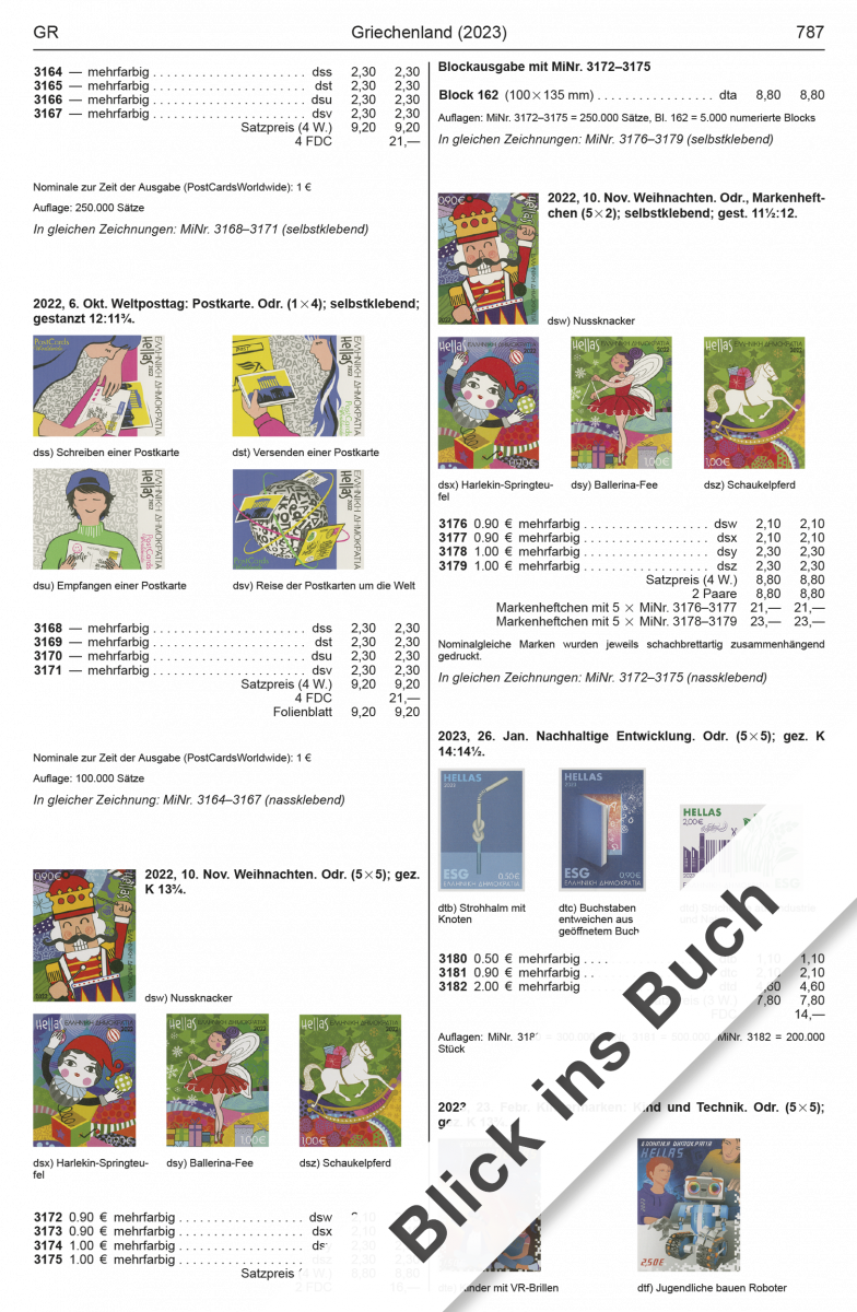 Die redaktionellen Verbesserungen verteilen sich über das gesamte Werk. In Alt-Bulgarien konnten wir neue Forschungserkenntnisse einpflegen. So sollten Sammler bei der Aufdruckausgabe „Wappenlöwe“ von 1884/1885 auf die Preisunterschiede zwischen den beiden Auflagen achten. Außerdem fügten wir in Bulgarien jeder Markenausgabe das Datum ihrer Außerkurssetzung hinzu. Auch der Jahrgang 2021 wurde hierbei berücksichtigt. Gleiches gilt für die Drachmen-Marken aus Griechenland. Zusätzlich ergänzten wir dort bei nass- und selbstklebenden Marken mit gleichem Motiv die jeweiligen Querreferenzen.