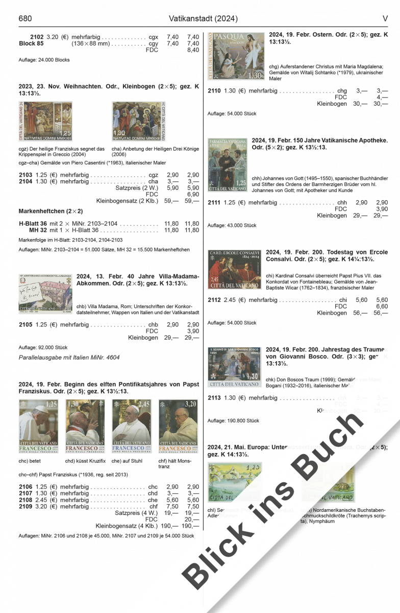 Ein weiterer Schwerpunkt lag in der Überprüfung und Aktualisierung der Preisnotierungen. Bei den hochpreisigen Marken Italiens fanden wir sowohl Aufwärts- als auch Abwärtsbewegungen. So konnte beispielsweise das „Maccari“-Markenheftchen aus dem Jahr 2019 seinen Wert verzehnfachen. Einen intensiven Blick warfen wir auf die ersten Jahrzehnte von San Marino und dem Vatikan und passten die Markenbewertungen entsprechend an. Auch die vatikanische Marke zum Weltjugendtag 2023 ist weiterhin stark gesucht. Die Notierung steigt hier wieder um mehrere hundert Euro.