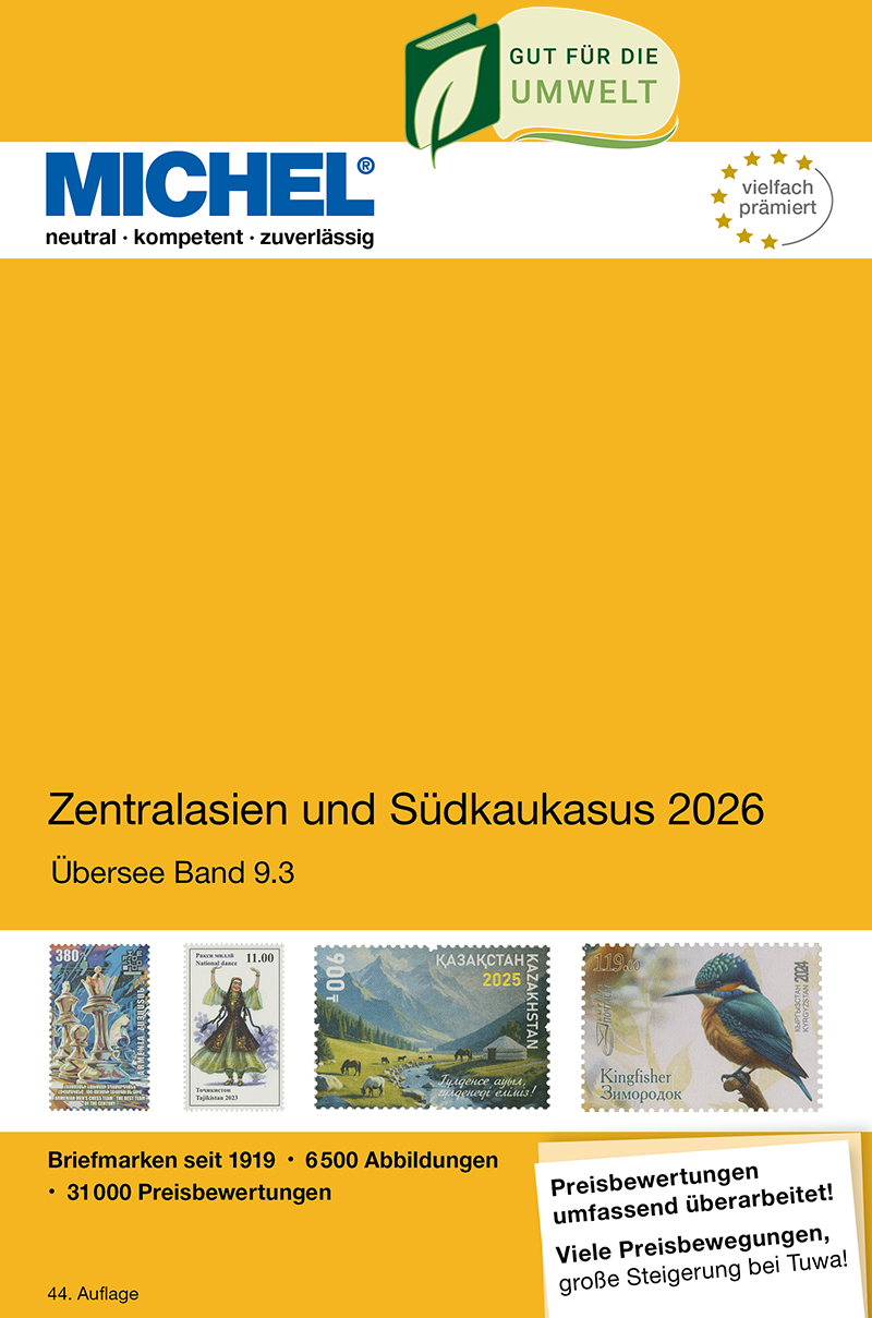You will find our editorial improvements throughout the whole catalogue. A noteworthy new piece of information comes from Abkhazia: A stamp previously considered as not having been issued has, according to current research findings, been confirmed to be an official issue of the Abkhazian Postal Service. As a result, the former MiNo. I has been renumbered MiNo. A 496. Furthermore, we were able to add all previously missing color photos of stamps issued by Tajikistan in 2022 and 2023.