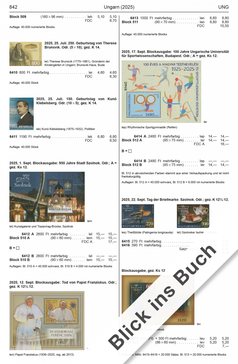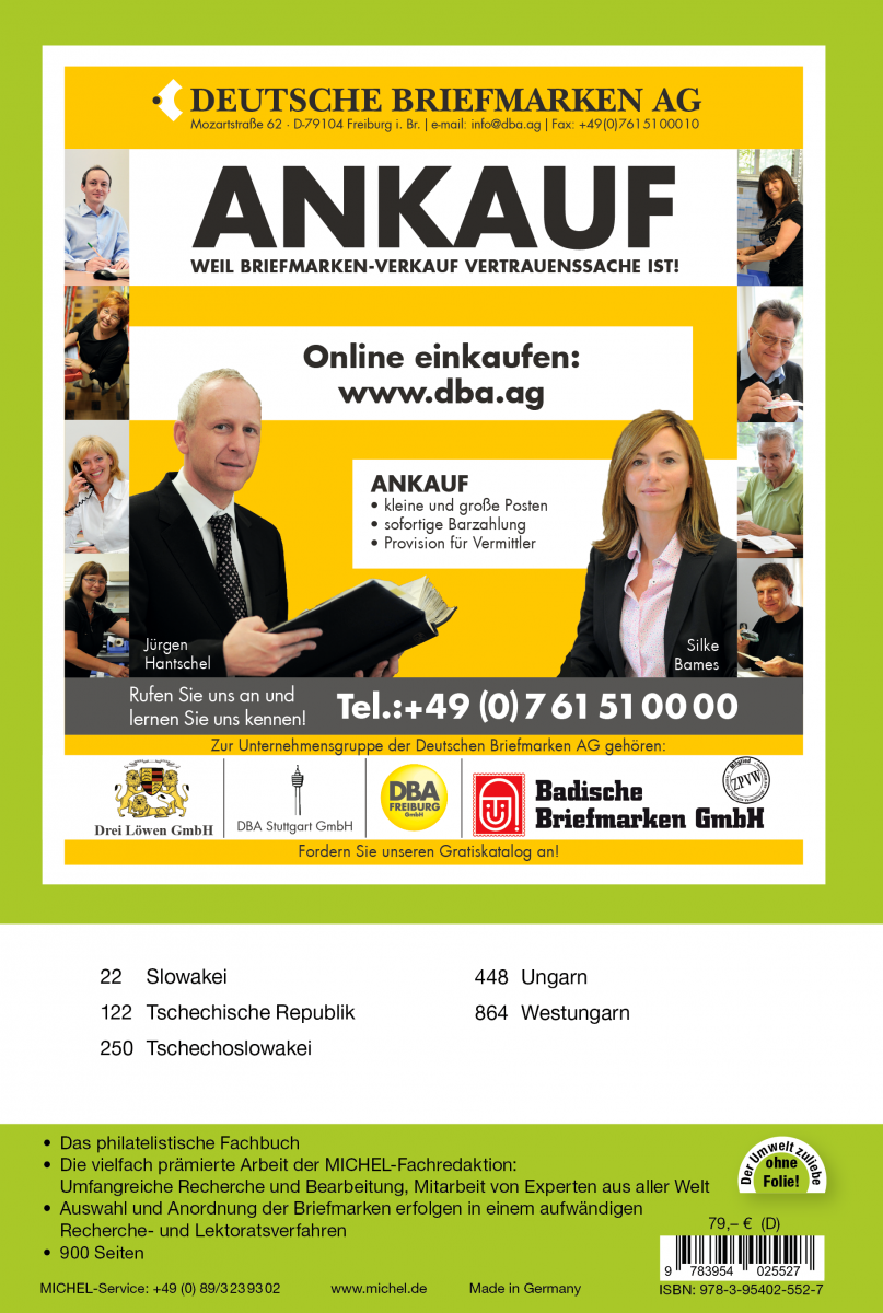 The improvements made by our editorial team can be found throughout the whole volume. We are pleased to report some interesting discoveries regarding issues from the Czech Republic, where a type variation of the Komenský stamp, MiNo. 283, is circulating without a nominal value. Apparently the geese on MiNo. 1006 have enjoyed a bit too much wine, so that we have now been able to include them in our catalogue as an upside-down reverse-print pair. We have included information on the current postage prices of Slovakian and Czech issues and expanded our list of personalized decorative fields of Hungarian stamps. Regarding Czechoslovakia, we have supplemented biographical data.