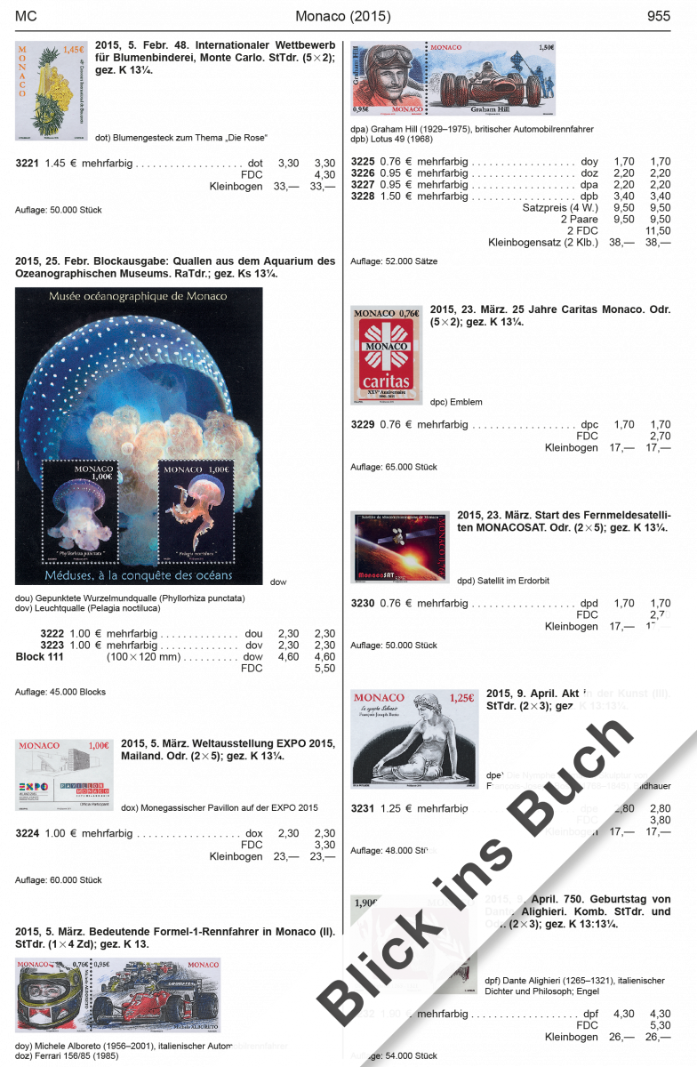 The review and updating of price listings were another focal point. The value of the Monaco stamp MiNo. 3697 I, a European stamp that was mistakenly printed without the inscription “Europa”, literally went “through the roof”. We also noted price fluctuations in special printings from Monaco. Modern limited-edition blocks issued in France have enjoyed increases in value, while a few high-priced issues from the period before 1960 have come under price pressure. Regarding issues from Andorra, the price quotations for tariff-coded stamps have been adjusted to reflect their higher values.