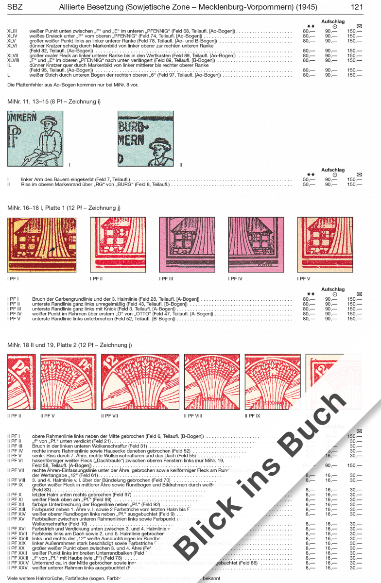 Numerous plate flaws from the collection areas of the GDR and West Berlin are now depicted for the first time ever, and new, previously unknown plate flaws have been included.