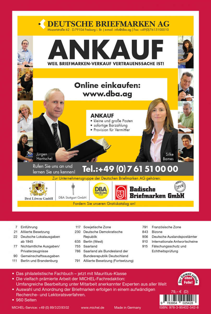 German local stamps issued starting in May 1945, including official and private stamps; joint issues, Berlin and Brandenburg, Soviet Zone; German Democratic Republic, Berlin (West), Saarland, French Zone, American Zone and British Zone, foreign postal offices, international reply coupons until 1990.